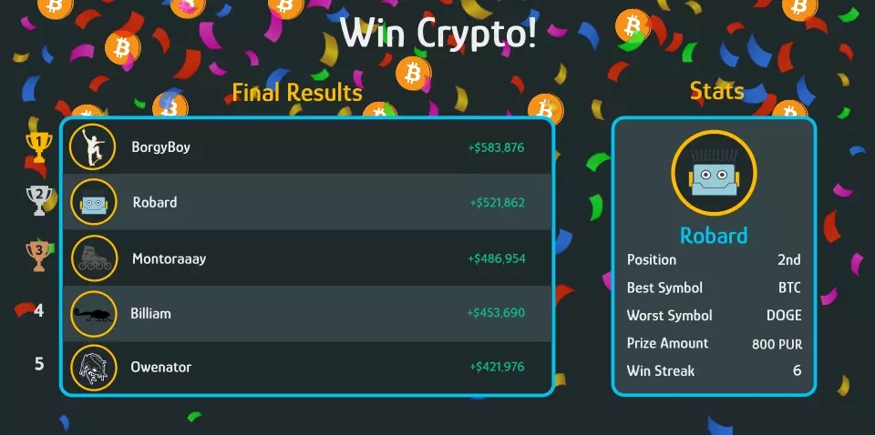 If you win the tournament, you win the pot of cryptocurrency!