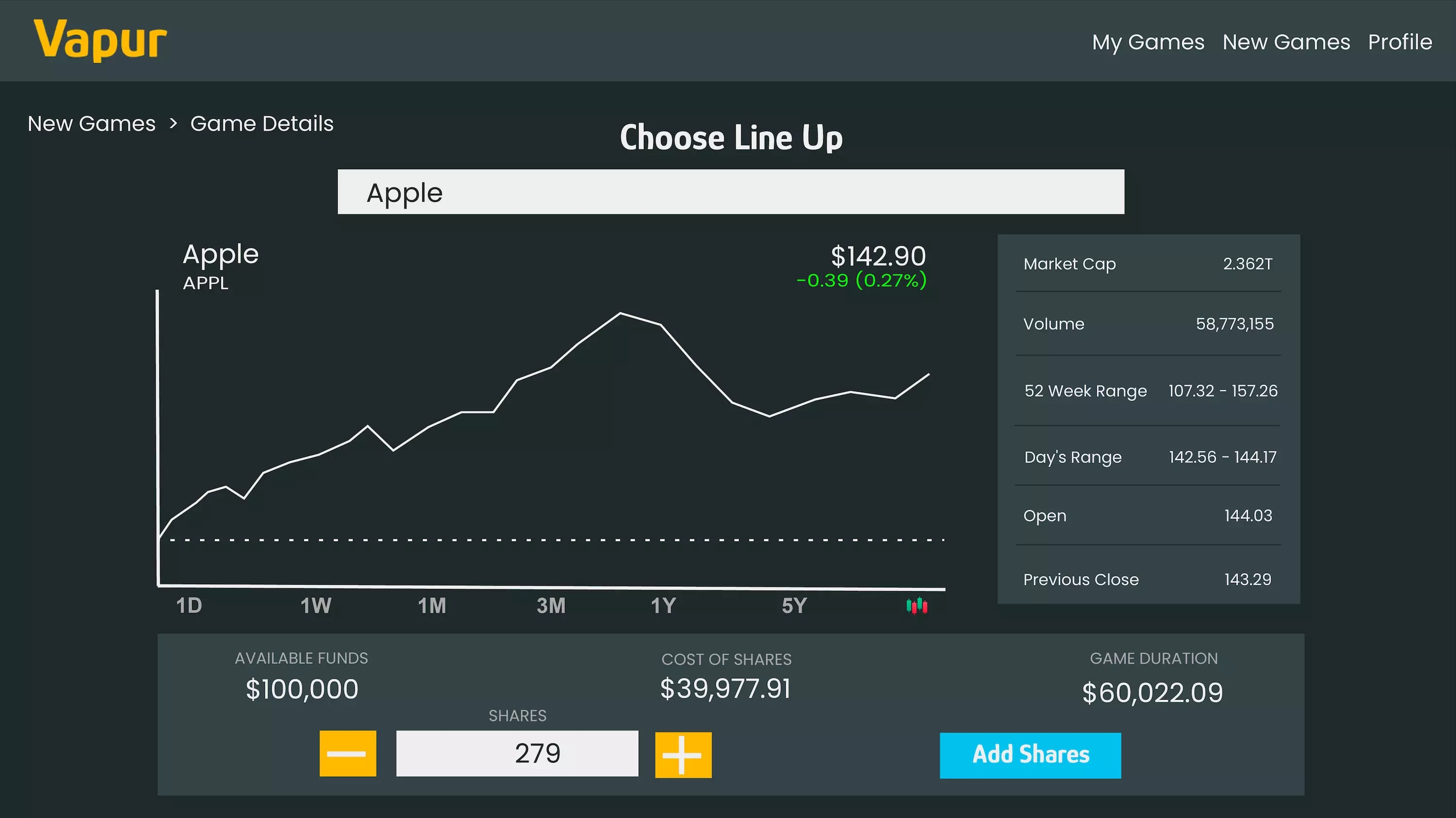 You will have $100,000 of fantasy money for adding stocks and cryptos to your lineup. *